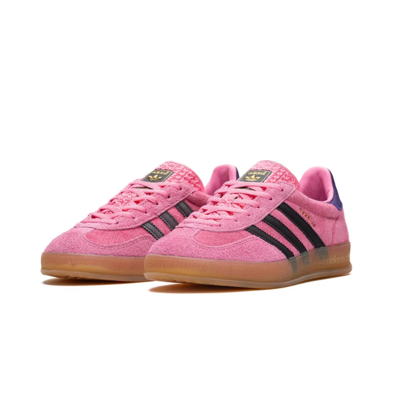 Adidas Gazelle Indoor W w wersji Bliss Pink to klasyczny model o lekkim, kobiecym charakterze, który świetnie odnajduje się w codziennych, miejskich stylizacjach. Różowa cholewka z miękkiego zamszu nadaje butom delikatny, stylowy wygląd, który łatwo zestawić z wieloma outfitami. Charakterystyczne trzy paski Adidas oraz złoty napis „Gazelle” na boku podkreślają ponadczasowe DNA modelu i sięgają do jego retro korzeni. Niska sylwetka zapewnia wygodę noszenia na co dzień, a gumowa podeszwa typu gum sole gwarantuje dobrą przyczepność i trwałość. To świetna propozycja dla osób, które chcą klasyczne Gazelle Indoor w przyjemnej, pastelowej wersji.
