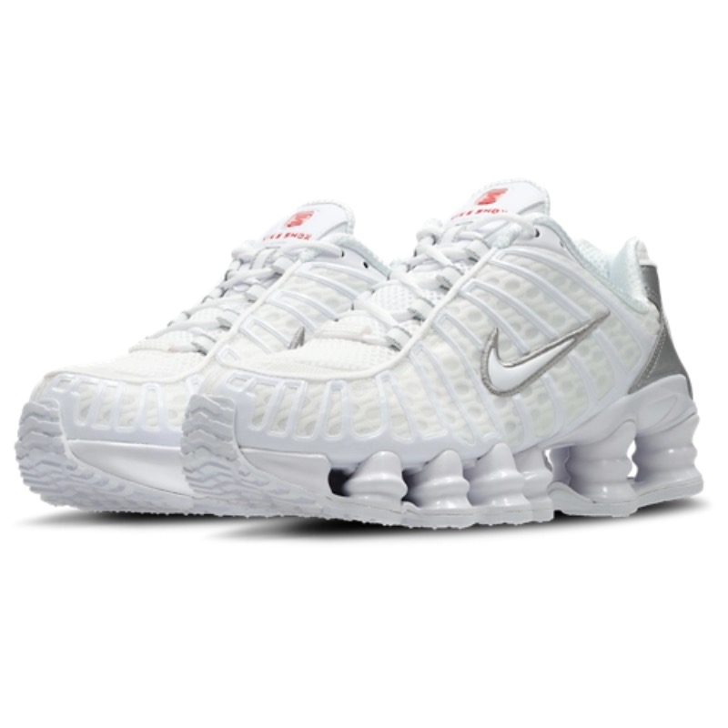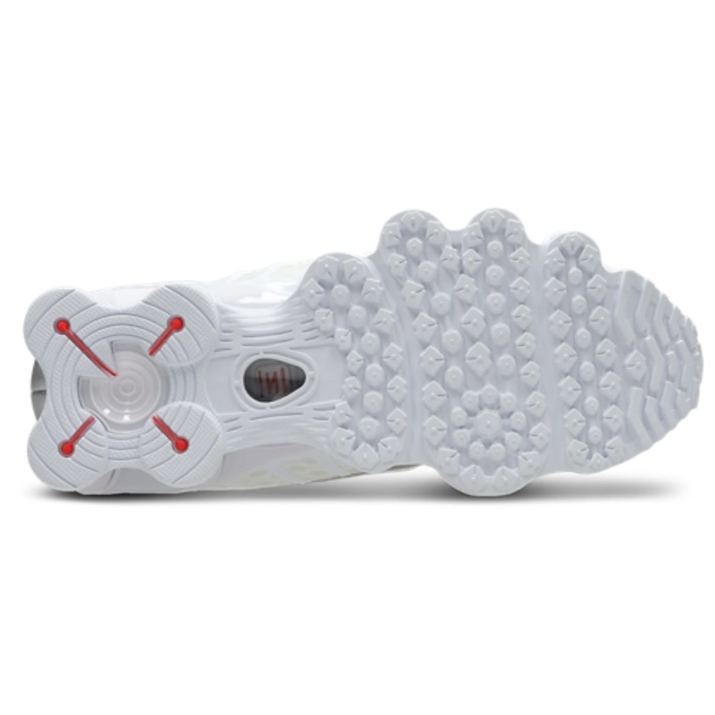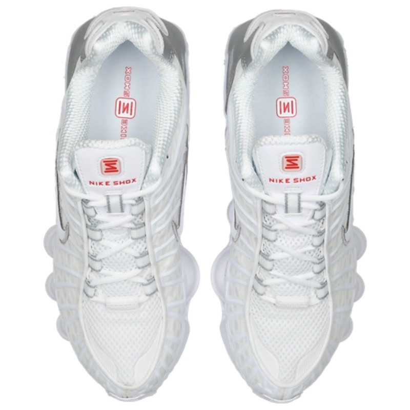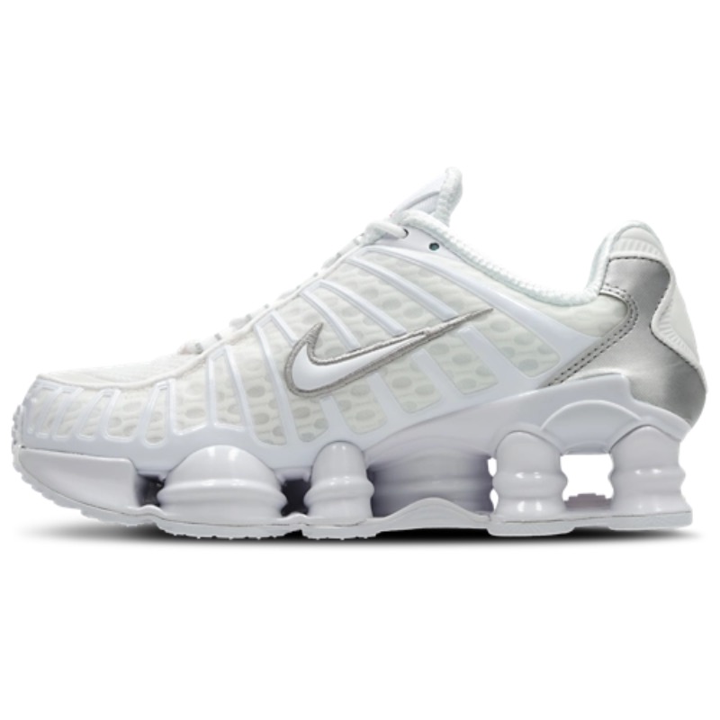 Nike Nike Shox TL w wersji White / Metallic Silver to nowoczesny model z mocnym, technicznym charakterem w jasnej, uniwersalnej odsłonie. Cała cholewka utrzymana jest w białym kolorze, który daje świeży, czysty wygląd i łatwo wpisuje się w codzienne stylizacje. Srebrne akcenty Metallic Silver subtelnie przełamują monochromatyczną bazę i dodają całości lekko futurystycznego sznytu. Cholewka wykonana z materiałów syntetycznych i siateczki dobrze dopasowuje się do stopy i zapewnia wentylację, a klasyczne sznurowanie stabilnie trzyma ją na miejscu. System amortyzacji Shox w podeszwie środkowej gwarantuje sprężystość, stabilność i komfort nawet przy dłuższym noszeniu. To propozycja dla osób, które chcą sneakersów z mocnym designem i jasną, uniwersalną kolorystyką.